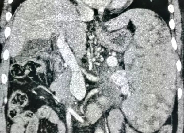 仔细了解病史,原来王阿姨有肝硬化病史,加急做了个CT检查。